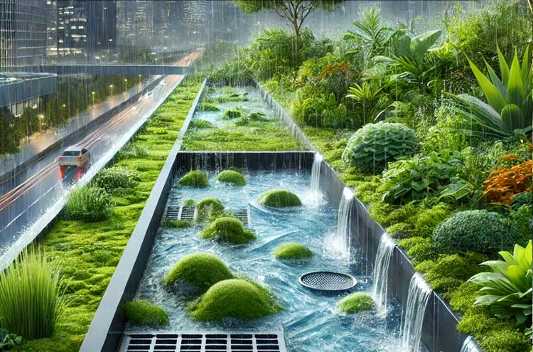 La végétation installée sur la toiture se nourrit donc de cet apport pour prospérer, ce qui la conduit à remplir un rôle de régulateur des eaux pluviales.
