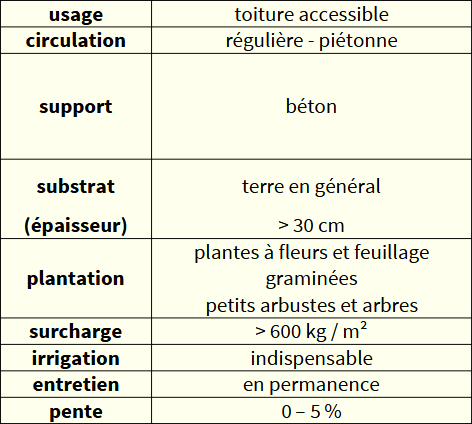Tant en conception qu'en réalisation, puis en exploitation, il y a donc lieu de distinguer trois types de végétalisation :